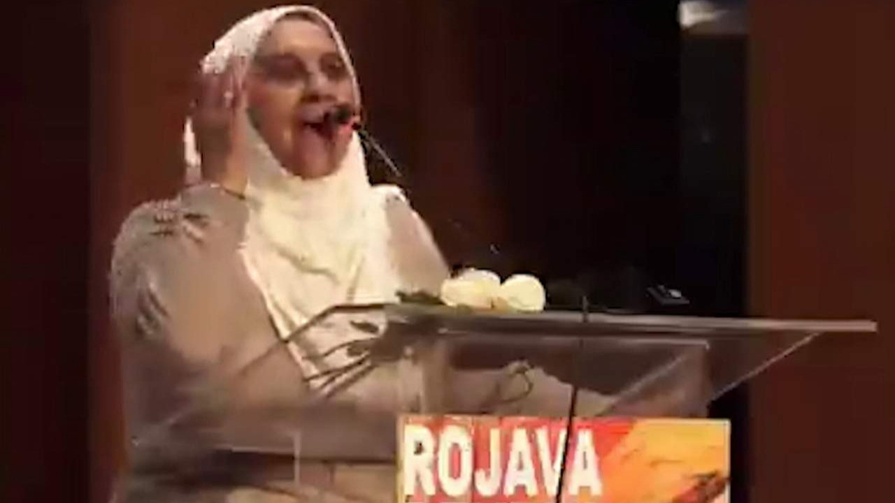 Eli Bölücü terör örgütü PKK'nın Suriye kolu olan PYD'nin elebaşı Salih Müslim'in eşi Ayşe Efendi Suriye'de düzenlenen bir toplantıda skandal açıklamalara imzasını attı.