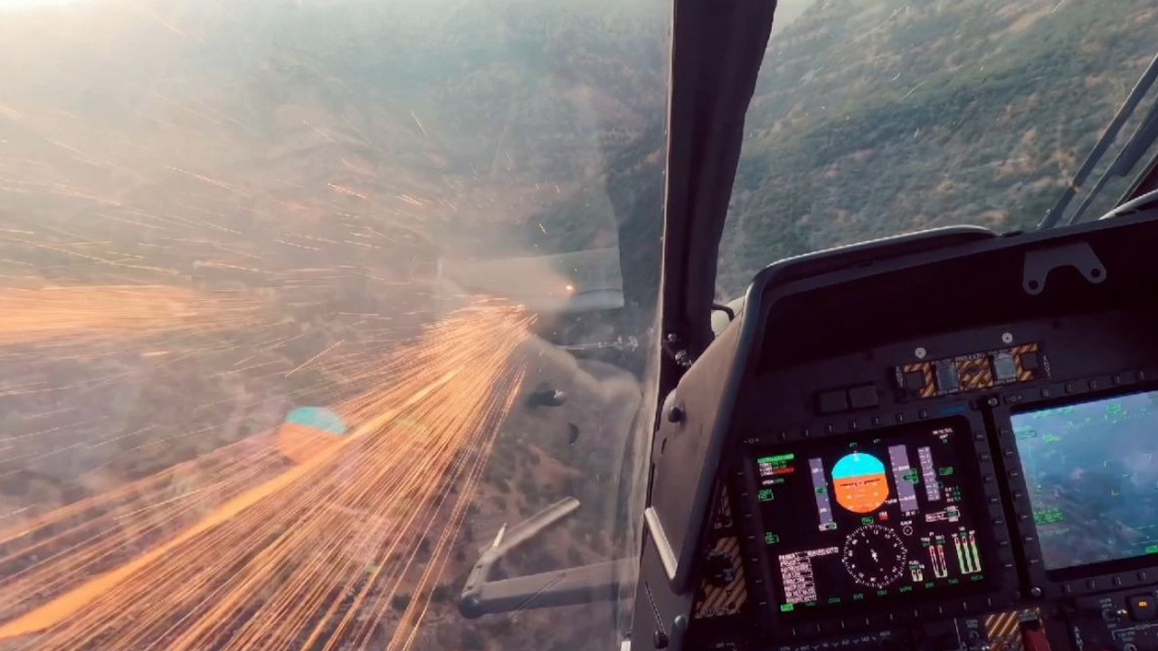 Operasyon sırasında iz bulma köpeklerinin halatlarla debisi yüksek nehirden geçirilmesi, taarruz helikopterlerinin şüpheli alanları taraması ise kameraya yansıdı.
