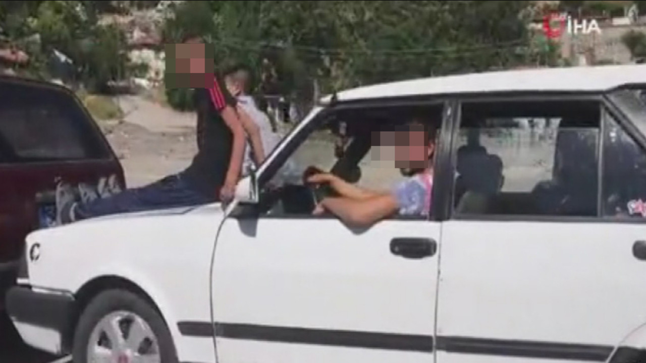 Edinilen bilgilere göre olay, Altındağ Bentderesi Caddesi'nde Ankara Hastanesi istikametinde yaşandı. Gitmekte zorlanan aracı arkadan bağlayıp çekmek yerine kaputa çocukları oturtup ayaklarıyla ittiren kişiler görenleri şaşkına çevirdi. Beyaz aracın üzerinde oturan çocuklar ölümle burun buruna yolculuk etti. Şahısların rahat tavrı ise pes dedirtti.
