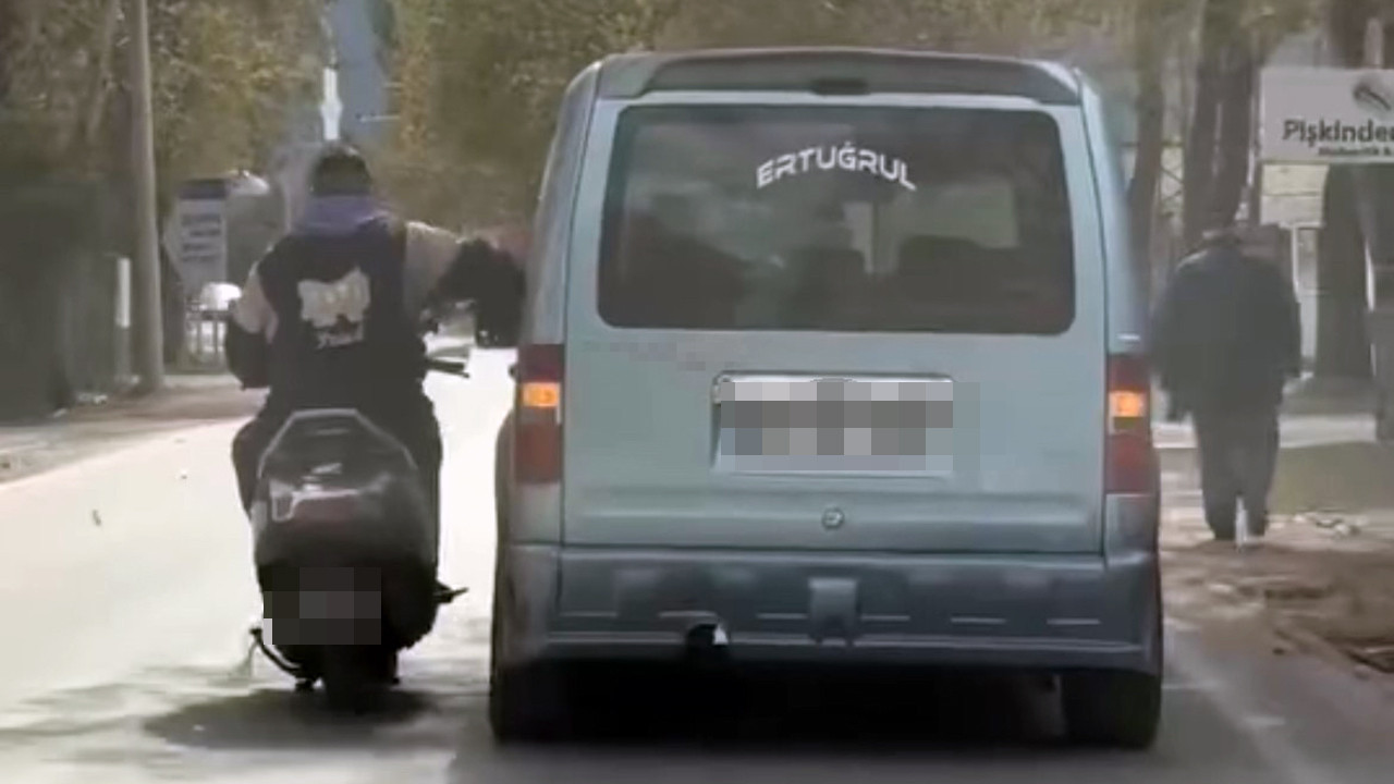 Abone OlBursa’da bir motosiklet sürücüsü seyir halindeki arkadaşıyla sohbet etmek için, bir elini seyir halindeki ticari aracın camına yasladı, diğer eliyle de motosikleti kullandı. Sürücülerin tehlikeli hareketleri kameralara yansıdı.