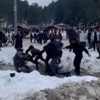 Yumruk ve tekmelerin havada uçuştuğu kavga, olay yerine gelen jandarma ekiplerinin müdahalesiyle sonlandı. Kavga anı ise bir vatandaş tarafından görüntülendi.