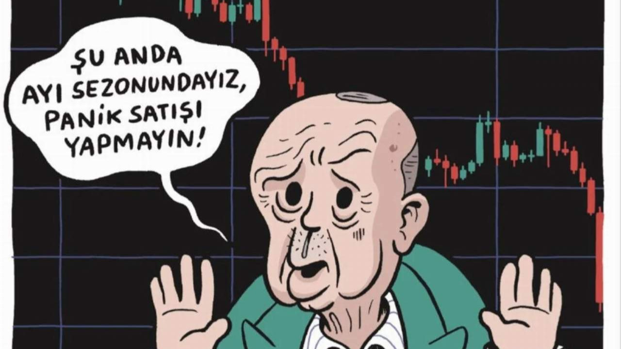 Uykusuz, "Anketlere göre AKP'nin oyları hızla erimeye devam ediyor" notunu düştüğü kapağında Erdoğan'ı "Şu anda ayı sezonundayız, panik satışı yapmayın" sözleriyle resmetti.