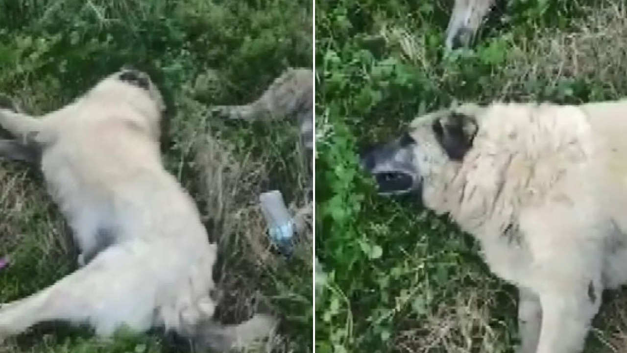 Vicdansızlar 2 köpeği zehirleyip, ölüme terk etti