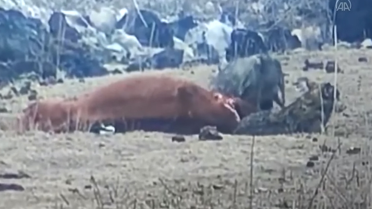 Bölgedeki bir kameraya yansıyan görüntülerde atı parçalayan kurtların iriliği de dikkati çekti.