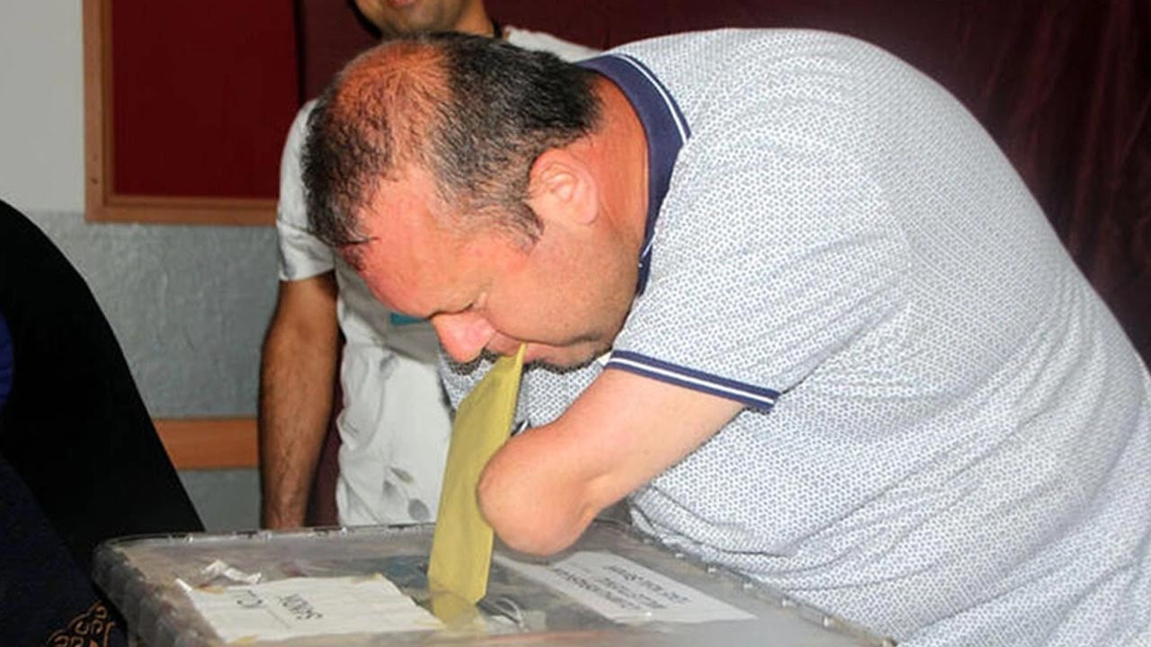 Abone Olİki kolunu kazada kaybeden 44 yaşındaki Bülent Bodur, Cumhurbaşkanı Seçimi ve 28'inci Dönem Milletvekili Genel Seçimi için oyunu kullandı.