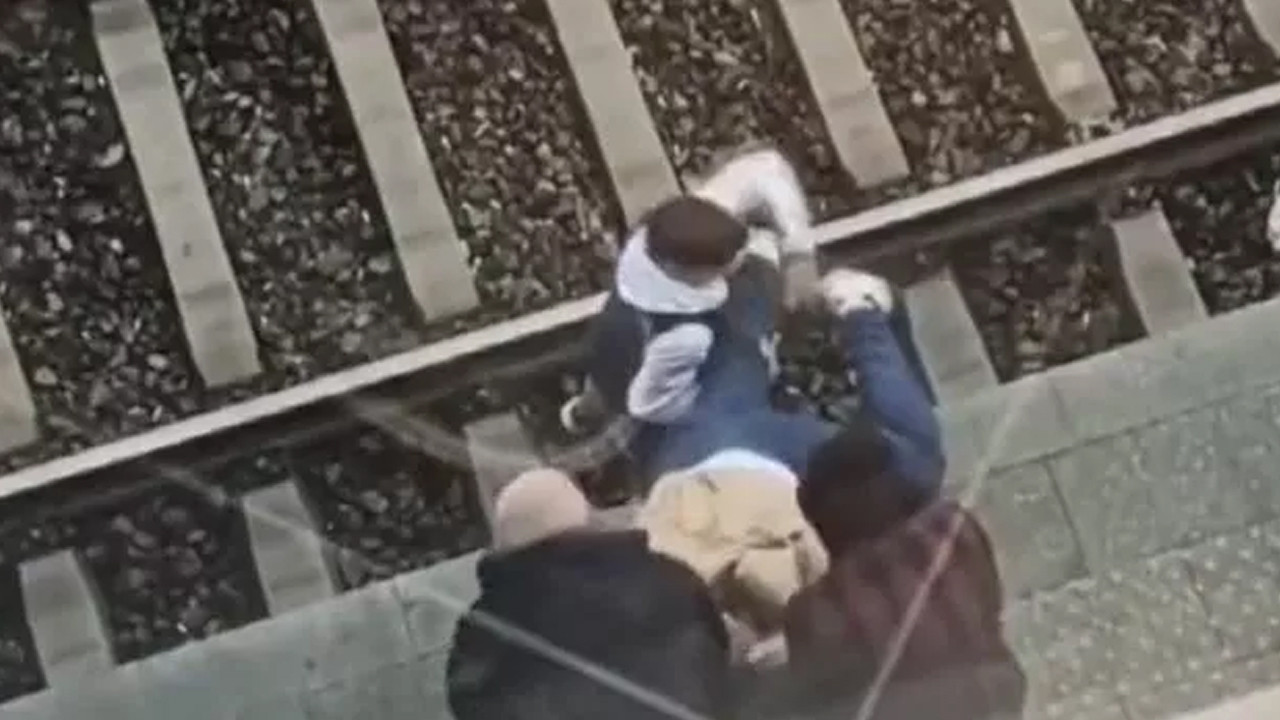 Yürekleri ağızlara getiren anlar: Raylara düştü, tren son anda durdu