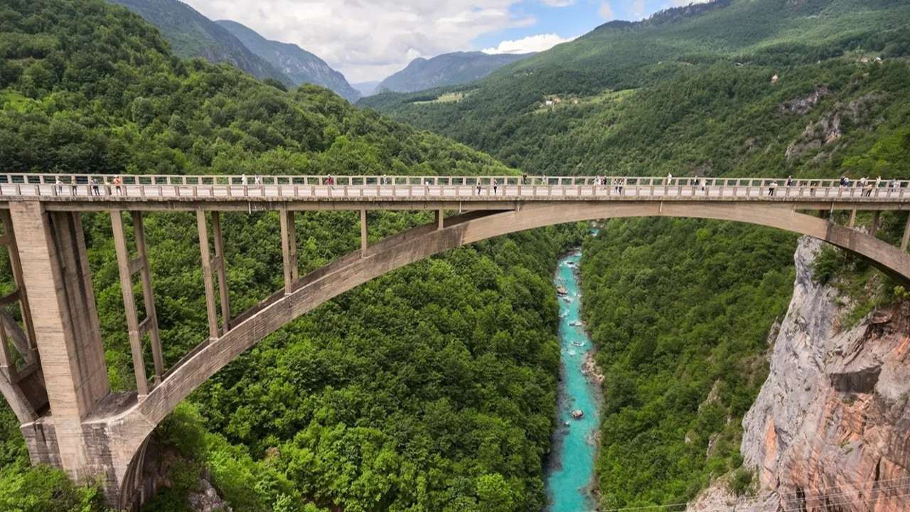 Kendinizi 150 metre yükseklikte ağaçların gür yeşilliklerine hayran kaldığınızı ve büyüleyici kanyonun sarp kayalıklarının berrak Tara Nehri'ne yansımalarını izlediğinizi hayal edin.