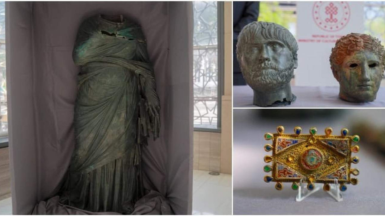 Bizans dönemine ait üç adet sikke, 18’inci ve 19’uncu yüzyıl Osmanlı dönemine ait iki adet hançer, çeşitli dönemlere ait üç adet pişmiş toprak kap, 11’inci yüzyılda üretildiği bilinen bir mücevher kutusu parçası ve bir pişmiş toprak lamba da iade edilen eserler arasında.