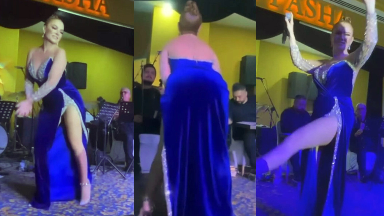 Kasığına kadar dekoltesiyle dikkat çeken Pınar Eliçe sahnede bir dakika olsun yerinde durmadı.