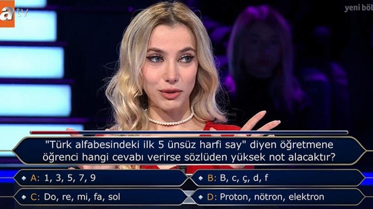 Yarışmacının henüz ikinci soruda karşısına, "Türk alfabesindeki ilk ünsüz 5 harfi say' diyen öğretmene öğrenci hangi cevabı verirse sözlüden yüksek not alacaktır?" sorusu çıktı. Yarışmacı heyecanına yenik düşerek , kolay soruda heyecanına yenilerek joker kullanmak istedi.