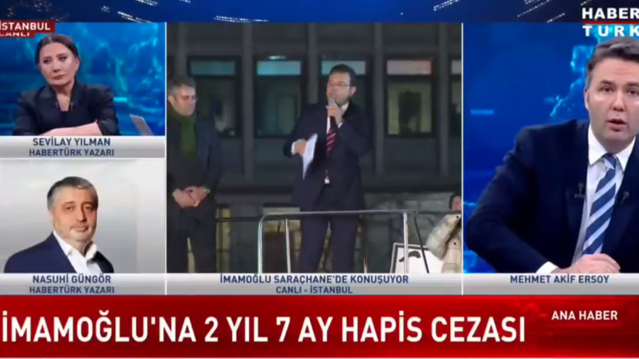 Abone Olİstanbul Büyükşehir Belediye Başkanı İmamoğlu'nun Saraçhane'de yaptığı konuşma sırasında canlı yayında olan Habertürk, İmamoğlu "bizim 2023 ideallerimiz var" dedikten sonra İmamoğlu'nun sesini kısarak yayını kesti.