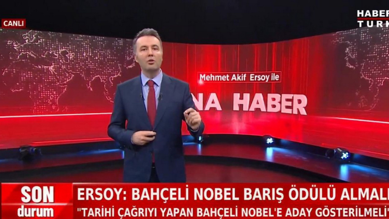 Öcalan'ın terör örgütü PKK'ya silah bırakma çağrısının ardından açıklamanın yapıldığı toplantıyı takip eden gazeteciler arasında yer alan Habertürk TV Ana Haber Bülteni sunucusu gazeteci Mehmet Ersoy, geçtiğimiz aylarda terörist elebaşı Abdullah Öcalan'a "Buyursun, örgütün tasfiye edildiğini, terörün bittiğini tek taraflı ilan etsin" diyerek çağrı yapan MHP Genel Başkanı Devlet Bahçeli'nin Nobel Barış Ödülü'ne aday gösterilmesi gerektiğini söyledi.