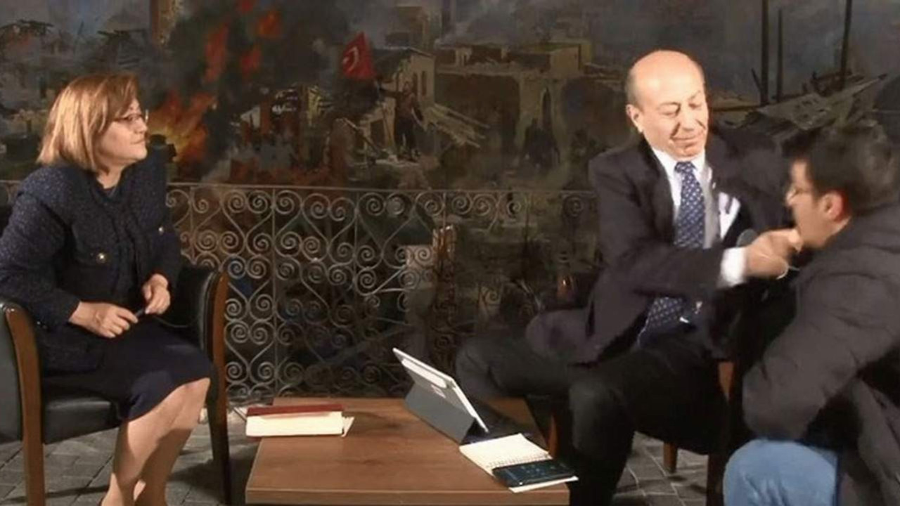 AK Partili Gaziantep Büyükşehir Belediyesi Başkanı Fatma Şahin'in konuk olduğu canlı yayında yayına gelerek ses sorununu çözmeye çalışan İHA muhabiri Ahmet Demir’e tokat atan Muharrem Sarıkaya görevine döndü.
