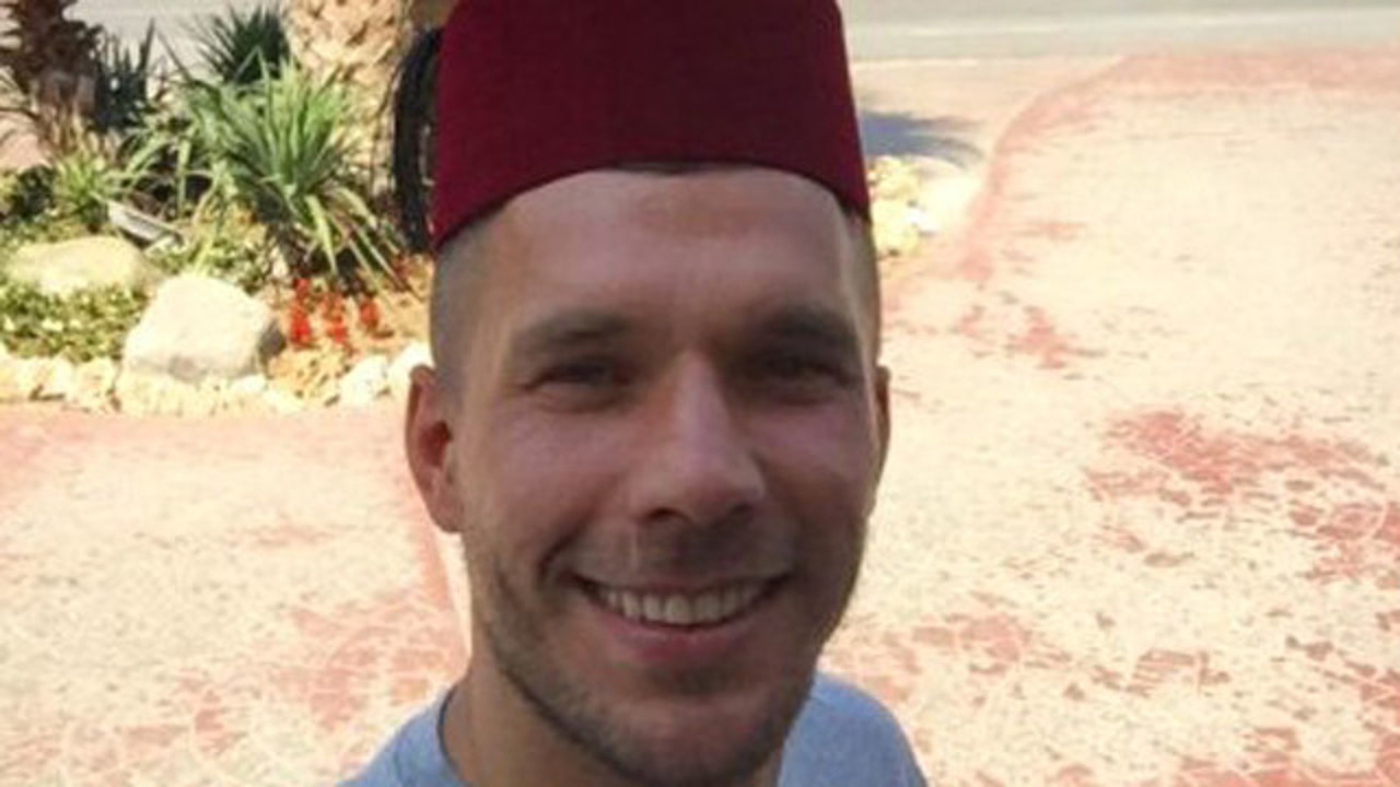 Podolski, başına fes takarak çekildiği fotoğrafını, "Fes başıma, fes başıma, püskülü ben olayım." notuyla paylaştı.