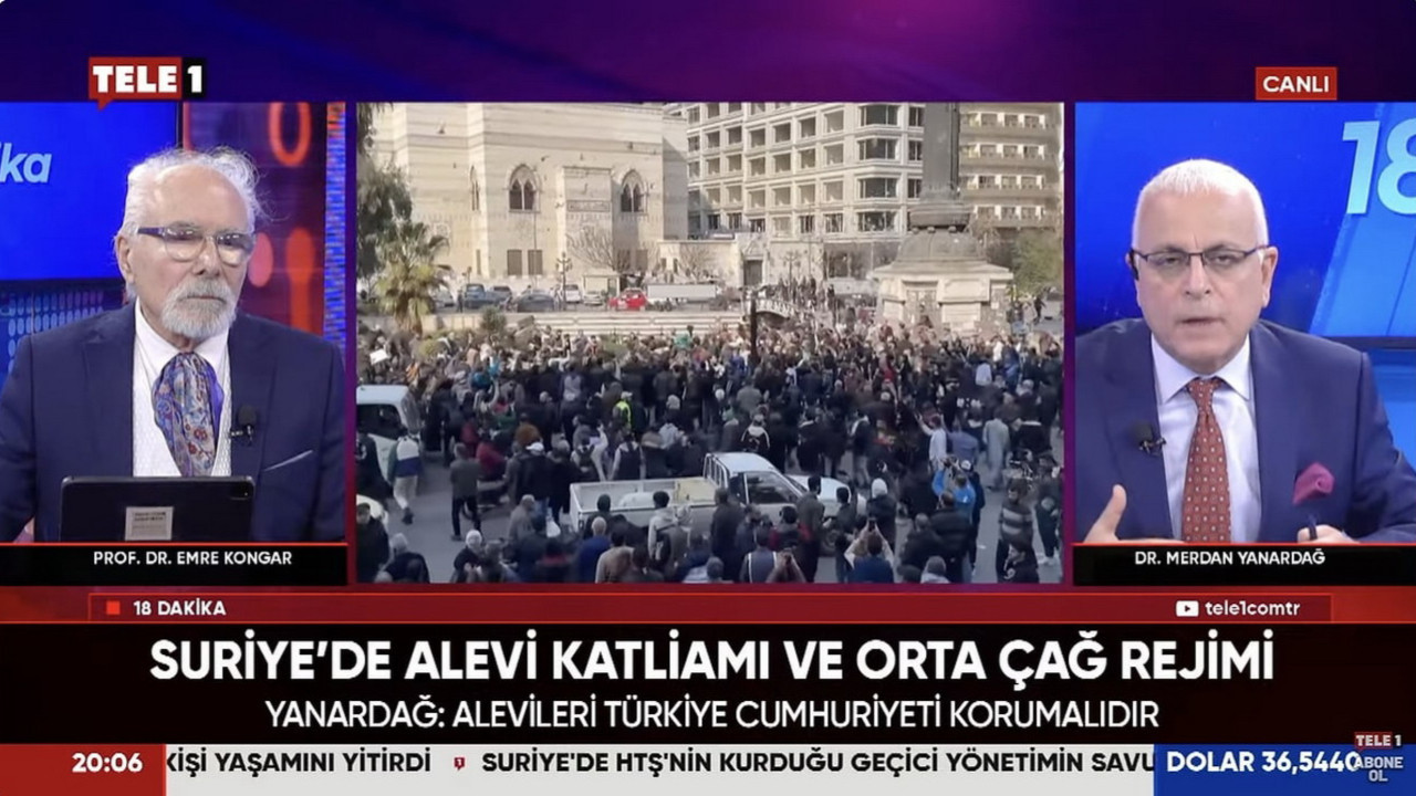 TELE 1 ekranlarında yayınlanan 18 Dakika programının 7 Mart tarihli yayınında Suriye'de yaşananlara dair açıklamalarda bulunan gazeteci Merdan Yanardağ, Suriye'de HTŞ'nin Alevi katliamı yaptığını dile getiren belirterek HTŞ ile ilgili olarak şu ifadeleri kullanmıştı: