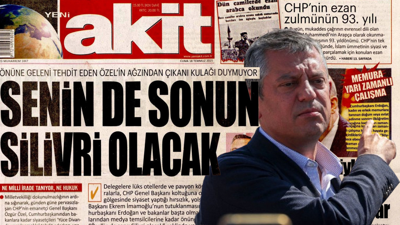 Özel'in "itlik" ifadesine Yeni Akit'in yanıtı ise skandal bir manşetle oldu. Yeni Akit, CHP lideri Özel'i manşetine taşıyarak "Senin de sonun Silivri Olacak" başlıklı yazıyla açık açık Özel'i tehdit etti.