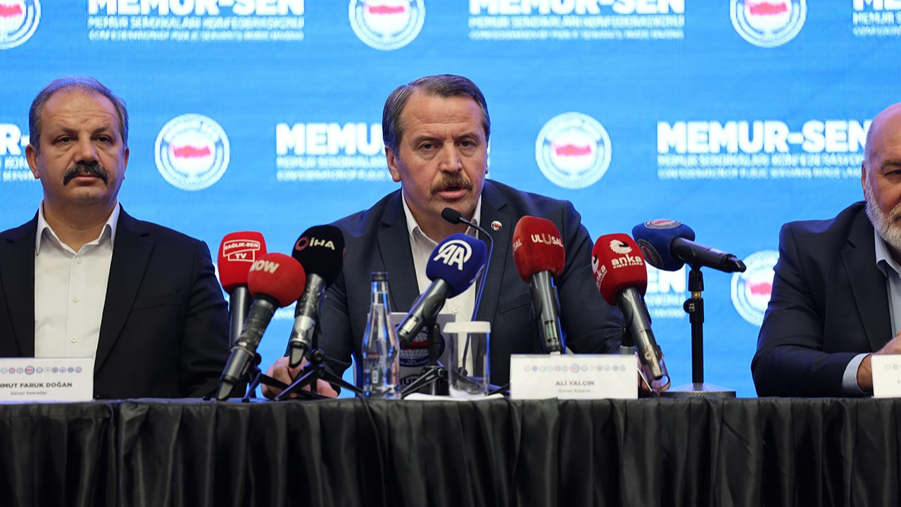 Memur-Sen Genel Başkanı Ali Yalçın, basın toplantısı düzenledi. Yalçın, geçen yıl genel merkezde yapılan toplantıda, Memur-Sen olarak 2024 yılına ilişkin 3’er aylık maaş artışı teklif ettiklerini, 2024 ve 2025 yılı için yüzde 10 refah payı istediklerini hatırlatarak, "Çünkü biliyoruz ki enflasyonist ortamda geçim mücadelesi verenler için uzun bir zaman olan 6 ay ya da 1 yıllık aralıklarla artış yapmak, kayıplara göz yummaktır. 2023 Ağustos ayında kamu işverenin yüzde 33 olarak öngördüğü 2024 yılı enflasyonu yukarı yönlü güncellendi ve bugün yüzde 47,09 olarak gerçekleşti. Kamu görevlilerine 2024 yılı için yapılan yüzde 25 maaş artışı 2024’te 1’inci 6 ayda mart ayından, 2’nci 6 ayda ise ekim ayından itibaren enflasyona yenik düştü. Bu oran işverenin beklentisi ve hakemin kararından 8 puan, gerçekleşen enflasyondan ise 22 puan sapmış durumda. Özetle; Kamu İşvereni ve Hakem Kurulu’nun maaş artış oranı ne hedeflenen, ne beklenen, ne de tahmin edilen enflasyon oranı kadar bile olmadı. Merkez Bankasının beklentisi, devletin hedefi, işverenin teklifi, hakemin ise kararı tutmadı. Sonuç itibarıyla kamu görevlilerinin etki etmediği fakat etkilendiği büyük bir maliyet ve mağduriyet tablosu ile karşı karşıyayız” diye konuştu.