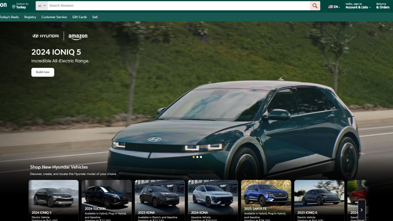 Amazon'dan yapılan açıklamada, 2024'te ilk kez otomobil satıcılarının ABD'deki Amazon kullanıcılarına araç satabileceğini, bu kapsamda satın alınabilecek ilk markanın Hyundai olduğu bildirildi.