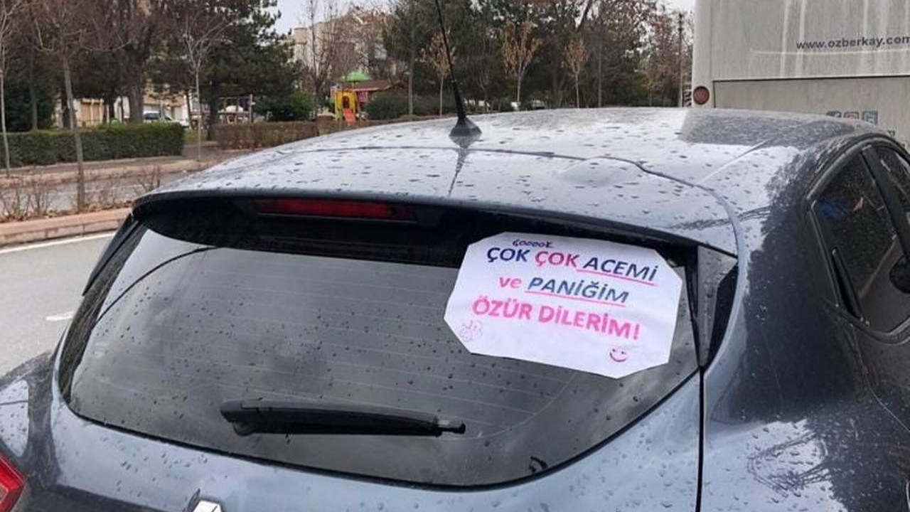 Abone OlEskişehir’de acemi sürücünün otomobilinin arka camına astığı “Çok çok acemi ve paniğim özür dilerim!” ifadelerini içeren yazı gülümsetti.
