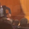 Platformun ucuna kadar gelen Koç, bir anda dengesini kaybederek yere düştü. Salonda bulunan üyeler büyük panik yaşarken, o anlar saniye saniye kameraya yansıdı.