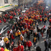 Kafileyi taşıyan otobüsün Mustafa Kemal Sahil Bulvarı üzerinden geçişi sırası bir grup Göztepeli taraftar, takım otobüsüne taş attı.