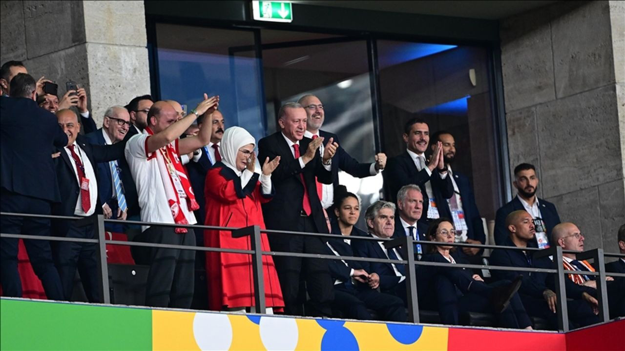 Öte yandan, Berlin Olimpiyat Stadı'ndaki maçı izleyen Erdoğan'ın yanında, Türk asıllı eski Alman milli futbolcu Mesut Özil de yer aldı.