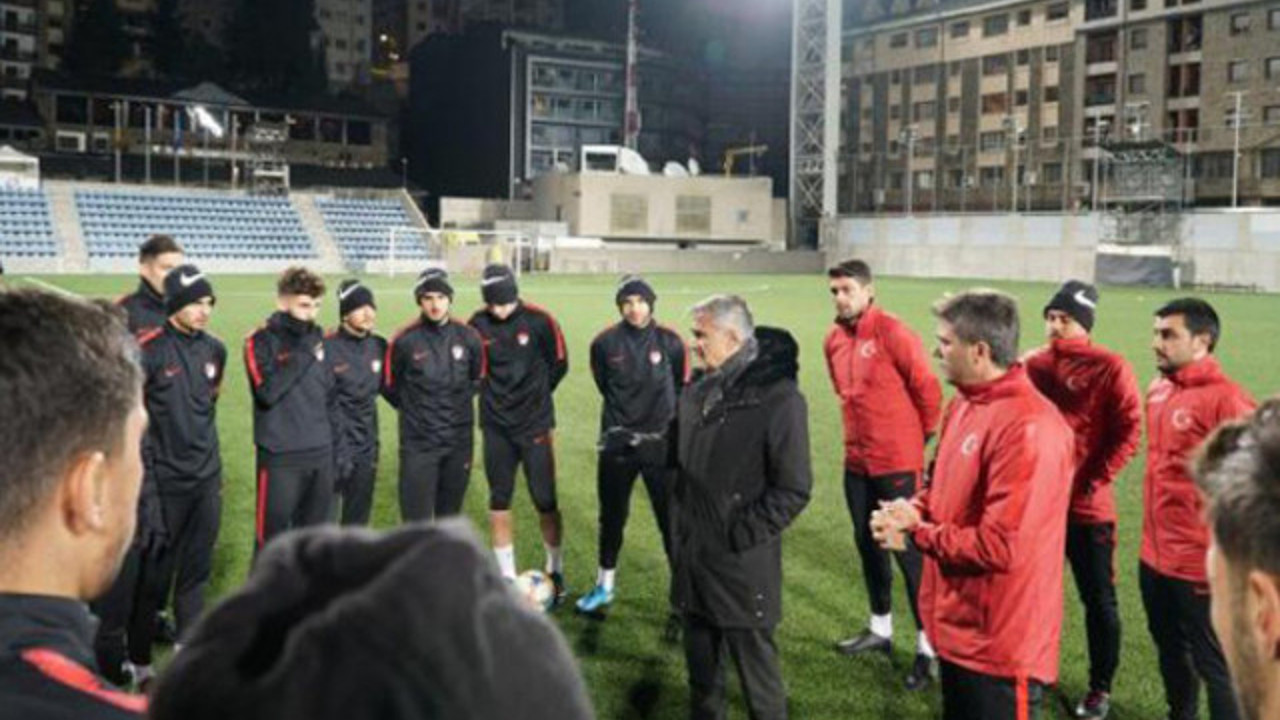 UEFA 2020 Avrupa Futbol Şampiyonası H Grubu 10'uncu maçında Andorra'yı 2-0 mağlup eden A Milli Futbol Takımı'nda teknik direktör Şenol Güneş, karşılaşma sonrası Ümit Milli Takımı'nın maçını da seyretmek için Andorra'da kalmıştı. Yarın oynanacak müsabakayı izleyecek olan tecrübeli teknik adam Ümit Milli Takımı'nın son antrenmanını yerinde takip etti ve idman öncesinde takıma bir konuşma yaparak başarılar dileğinde bulundu.