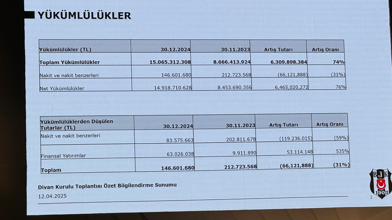 Şentürk, 31 Aralık 2024 tarihi itibarıyla siyah-beyazlı kulübün borcunun 15 milyar 65 milyon 312 bin 308 TL olduğunu açıkladı.