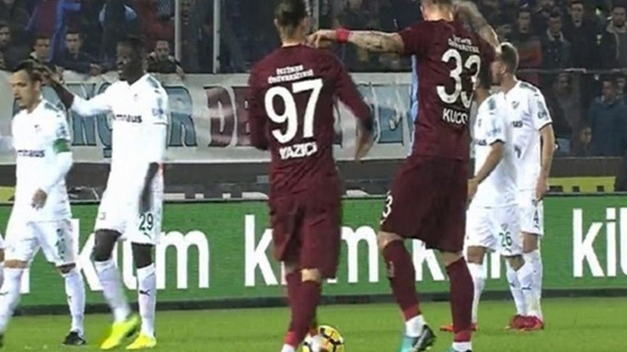 24. dakikada Trabzonspor lehine verilen frikikte topun başına Yusuf Yazıcı geçti. Frikiği kullanmak isteyen Kucka, Yusuf Yazıcı’nın kullanmak istemesi sonucu Yusuf’u itti. Yusuf Yazıcı moral bozukluğuyla topun başından ayrıldı. Ardından Kucka topun olduğun alandan uzaklaştı ve frikiği Okay Yokuşlu kullandı.