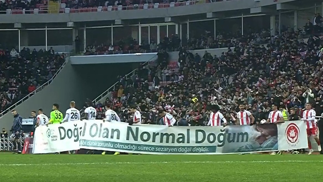 Trendyol Süper Lig'in 31. haftasında Sivasspor ile Fenerbahçe karşı karşıya geldi. Sivasspor'un maç öncesi sahaya ''Doğal olan normal doğum'' pankartıyla çıkması tepki çekti.