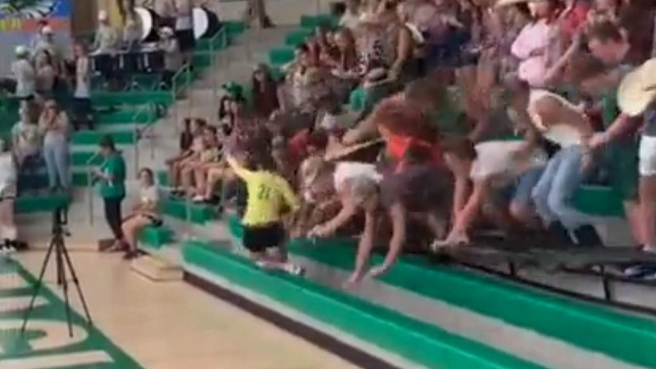 Tribündeki ailesini selamlamak için giden voleybolcu hiç beklemediği bir kazayla karşılaştı. Aniden yıkılmaya başlayan tribün sporcunun üzerine düştü.