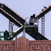 Logo değişimi esnasında sokakta yeterli güvenlik önleminin alınmadığını söyleyen San Francisco polisi, çalışanlara müdahale etti.