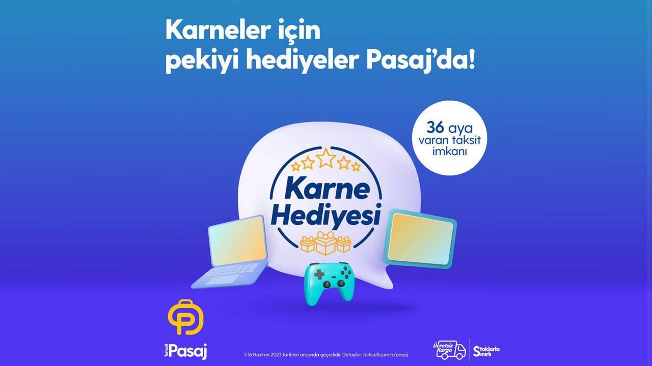 Abone OlTurkcell mağazalarında ve Türkiye’nin yeni nesil pazar yeri platformu Pasaj’da Karne Günü’ne özel fırsatlar başladı. 16 Haziran’a kadar sürecek Karne Günü kampanyasında PC'ler, tabletler, oyuncu aksesuarları, dijital oyun kodları, scooter'lar, drone'lar, akıllı saatler ve daha birçok ürün avantajlı fiyatlarla sunuluyor. Öğrencileri mutlu edecek birçok hediye seçeneğinin yer aldığı Pasaj’ın kullanıcıları, ücretsiz kargo ve farklı ödeme seçenekleri gibi fırsatlardan da yararlanabiliyor.