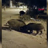 Türkiye'nin Ege'deki tatil cennetlerinden biri olan Aydın'ın Didim ilçesinde ormanda yiyecek bulamayan ve aç kalan yaban domuzları, şehre indi. O anlar, cep telefonu kamerasıyla kaydedildi.