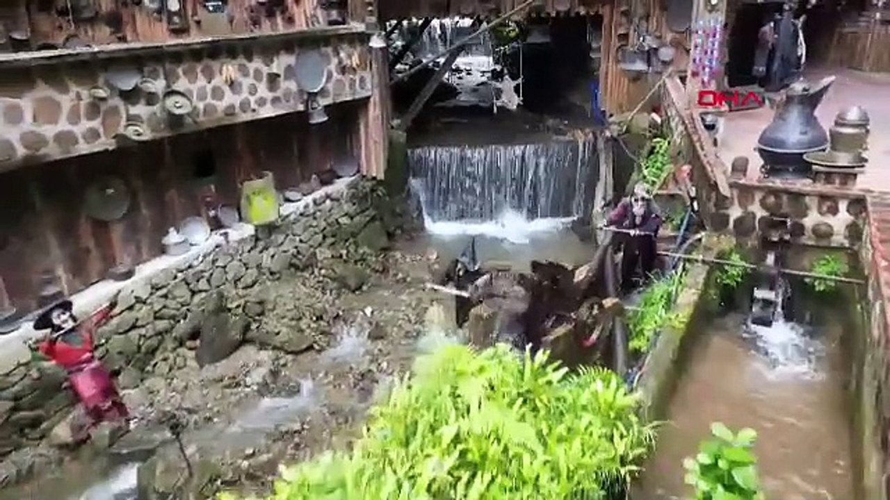 Trabzon'da her noktasına yerleştirilen tüyler ürpertici cadı figürleri ve plastik heykellerle korku filmlerini aratmayan dere kıyısında yer alan alabalık tesisi turist akınına uğruyor.