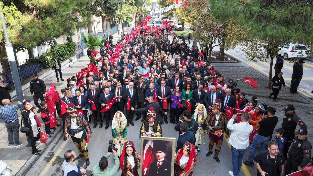 Program, Atatürk’ü Manisa’ya getiren trenin temsili olarak karşılanmasıyla başladı. Ardından Manisa Büyükşehir Belediyesi Halk Dansları Ekibi, birbirinden renkli halk oyunları gösterisiyle izleyenlere görsel bir şölen sundu. Tren garından başlayan kortej yürüyüşü, vatandaşların yoğun ilgisi eşliğinde Cumhuriyet Meydanı’na kadar devam etti. Meydanda düzenlenen törende, Atatürk ve Milli Egemenlik Anıtı’na çelenkler sunuldu. Çelenk sunumunun ardından kürsüye gelen Manisa Büyükşehir Belediye Başkanı Besim Dutlulu, 100. yıl dolayısıyla yaptığı anlamlı konuşmada, Atatürk’ün Manisa’ya gelişinin tarihsel önemine vurgu yaparak, Cumhuriyet değerlerinin korunması ve gelecek nesillere aktarılması gerektiğini dile getirdi.