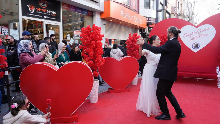 Kutlamaların coşkusu, Ankara Caddesi boyunca sergilenen sanatsal performanslarla doruğa ulaştı. Kartal’ın tarihi caddesinde gerçekleştirilen gösteriler, romantizmin farklı tonlarını katılımcılara yaşattı. Profesyonel dans topluluğunun Ankara Caddesi’nin tarihi dokusunda sergilediği büyüleyici tango ve vals gösterileri, izleyicilerden tam not aldı. Latin ritimlerinin tutkusu ve klasik valsın zarafetiyle süslenen gösterim, aşkın evrensel dilini Kartallılara bir kez daha hatırlattı. Bazı cesur çiftler de sanatçıların davetiyle piste çıkarak dans etmenin keyfini yaşadı. Özel olarak kurulan sahnede ise, sevgi temalı ve romantik şarkılar seslendirildi. Yerel sanatçıların seslendirdiği aşk şarkılarına yüzlerce Kartallı hep bir ağızdan eşlik ederken, cadde adeta dev bir konser alanına dönüştü.
