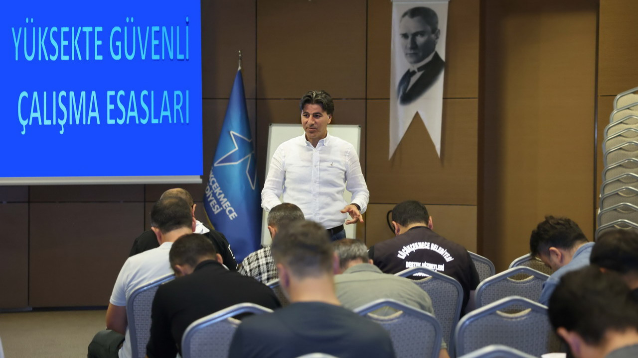 Belediye Başkanlığı Çok Amaçlı Salonu’nda gerçekleştirilen eğitimde Küçükçekmece Belediyesi A Sınıfı İş Güvenliği Uzmanı Yakup Yıldız; yüksekten düşme sebepleri, düşmeye karşı alınabilecek önlemler, merdivenle ve iskelelerle yapılan çalışmalar, genel öneriler, işçi ve işveren sorumluluğu gibi konularda ayrıntılı bilgi verdi.