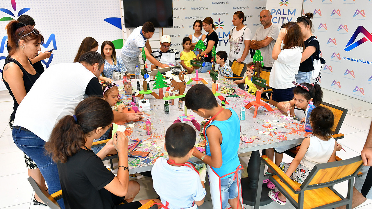 Palm City AVM Sergi Salonu’nda gerçekleştirilen etkinlik hakkında bilgi veren Mersin Büyükşehir Belediyesi Kadın ve Aile Hizmetleri Dairesi Başkanlığı Gönüllüler Şube Müdürlüğü’ne bağlı ahşap sanatçısı Murat Sönmez, “30 Ağustos Zafer Bayramı dolayısıyla gerçekleştirdiğimiz etkinlikte, çocuklarla güncel konularla ilgili haftanın önemini anlatan ahşaptan objeler yapıp, beraberce boyayıp, rüzgar gülü haline getirip güzel bir etkinlik yapmak istedik” dedi.
