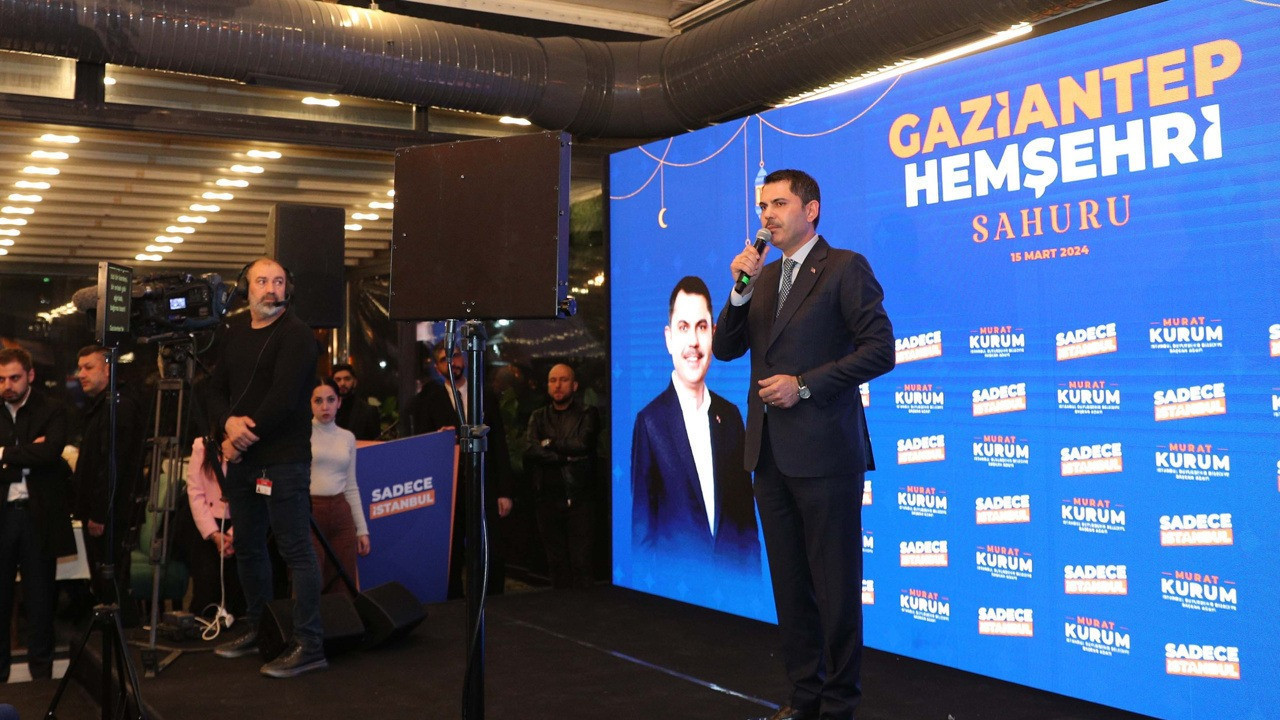 Seçime sadece 15 gün kaldığını hatırlatan Murat Kurum, Gazianteplilere bir de çağrı yaptı. Seçimin İstanbul'un geleceğine yatırım yapacak olanlarla İstanbul'u rant olarak görenler ve İstanbul'un kaynaklarını çarçur edenler arasında geçeceğine dikkat çeken Kurum, "O güne kadar benim Gaziantepli kardeşlerimden ricam, gidilmedik ev, çalınmadık kapı bırakmayalım. Tüm kardeşlerimizin gönüllerine girelim. İstanbul hayalimizin etrafında hep birlikte kenetlenelim. 15 gün sonra sandığa gittiğimizde oy kabininde uzunca bir çarşaf olacak ama karşımızda iki seçenek olacak. ya hayatımızı her anıyla kolaylaştıranlara ya da günden güne zorlaştıranlara oy vereceğiz. İstanbul'u ihya etmek isteyenlere ya da 5 yıldır ihmal edenleri seçeceğiz. Oy pusulasında neden partiler yok, neden sadece adaylar var biliyor musunuz? Çünkü trafik çilesi parti ayrımı yapmıyor, hepimizin ömründen ömür çalıyor. Çünkü, metro ve metrobüs duraklarındaki sıkışıklıkta hepimiz aynı çileye ortak oluyoruz. Çünkü deprem siyasi ayrım gözetmiyor, Allah göstermesin hepimizi enkaz altında bırakıyor. Çünkü yeterli yeşil alanımız, dinlenme alanımız, parkımız ve bahçemiz yoksa hepimiz nefessiz kalıyoruz" ifadelerini kullandı.
