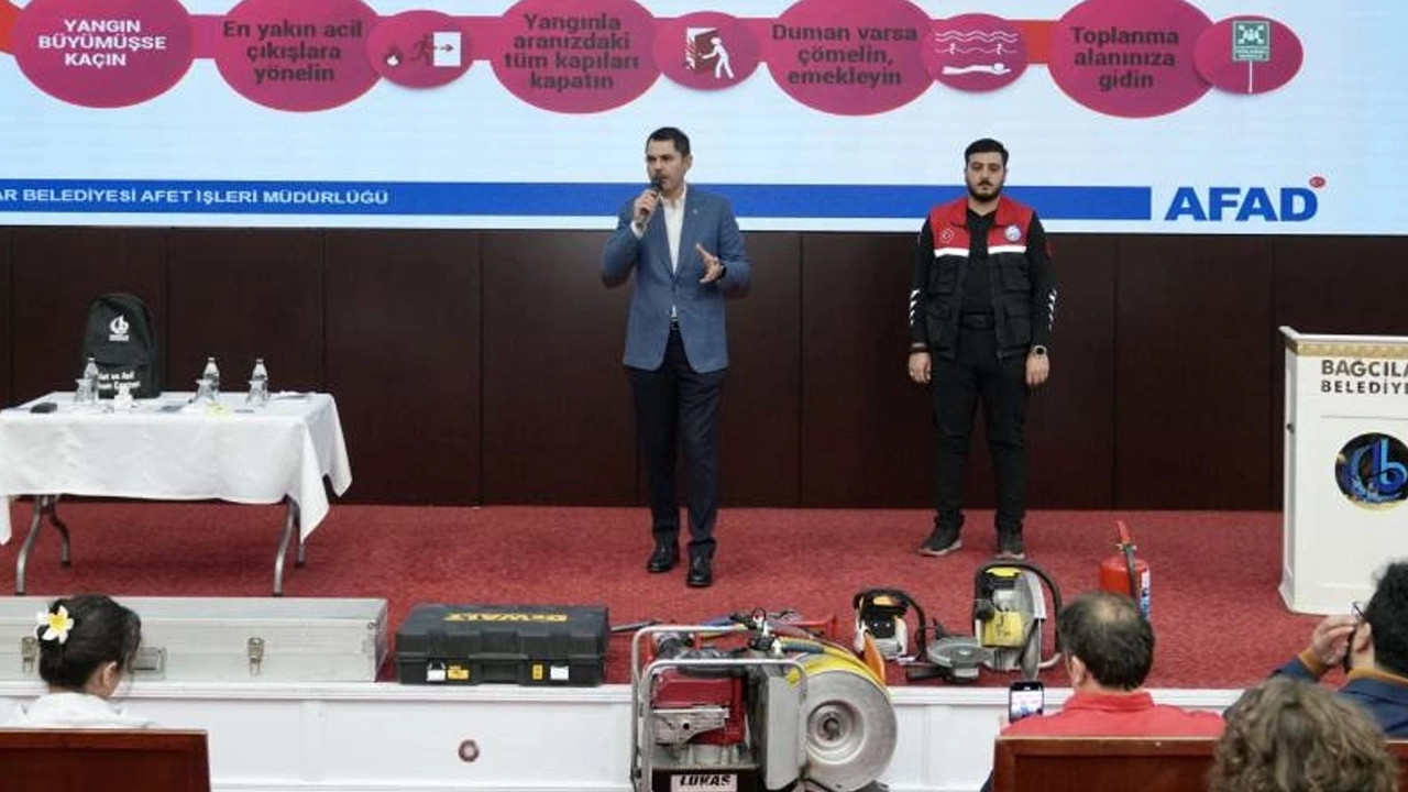 İstanbul’daki riskli yapıların acilen dönüştürülmesi gerektiğini belirten Murat Kurum, “Çevre, Şehircilik ve İklim Değişikliği Bakanlığı görevini yürüttüm. Ülkemizde nerede bir afet olsa arama kurtarma ekiplerimizle birlikte orada omuz omuza mücadele ettik. Ülkemiz bir deprem ülkesi. Maalesef nüfusumuzun yaklaşık yüzde 70’i deprem bölgelerinde yaşıyor. Yaşadığımız depremlerde, bir asırda 130 bin canımızı yitirdik. Depremle mücadele etmeyi öğrenmek, deprem gerçeğiyle birlikte yaşamak zorundayız. İstanbul'umuz da maalesef bir deprem şehri. Bilim insanlarımız, hocalarımız bize İstanbul'da bir deprem olacağı gerçeğini her zaman ifade ediyorlar. Peki biz ne yapmalıyız? Bir taraftan olası depremlerde ne yapacağımızı bilmemiz, diğer taraftan da en kısa zamanda riskli binalarımızı dönüştürmemiz gerekir. Bu ikisi bugün İstanbul için, ülkemiz için en önemli gündemlerden biridir. Deprem dönüşümü terörle mücadele kadar önemlidir. Gittiğimizde o enkazlarda yavrusunu, annesini, yakınlarını bekleyen ailelerin feryadına şahit oldum. Malatya’da, Elazığ’da, İzmir’de asrın felaketinin ardından Kahramanmaraş Pazarcık’ta, 11 ilimizde. Günlerce oradaydım ve emin olun şu görmüş olduğunuz makas, jeneratör, hilti o gün o saat o kadar önemli, o kadar değerli ki, depreme hazırlıklı yakalanmanız çok kıymetli. ‘Enkazın altından benim yavrumu çıkart’ diyor. ‘Enkazın altından benim annemi çıkarın’ diyor. Büyük bir afet karşısında da biz hazırlıklarımızı yapmak zorundayız.” şeklinde konuştu.